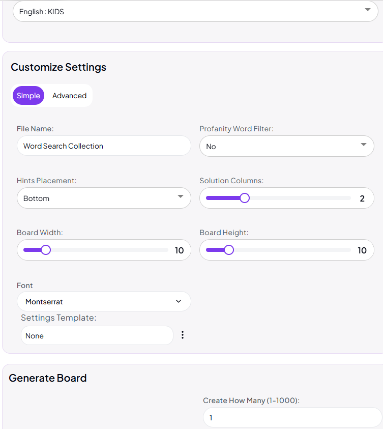 Ability to generate multiple puzzles was on the bottom right of page and as soon as you select "Custom Word List" this box totally disappears from view and no way to generate more than 1 puzzle when trying to use custom word list.